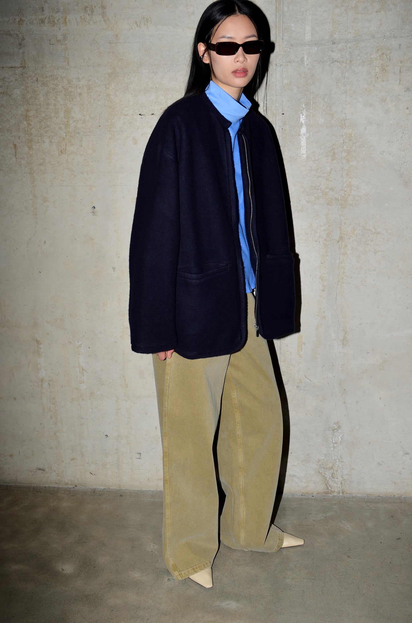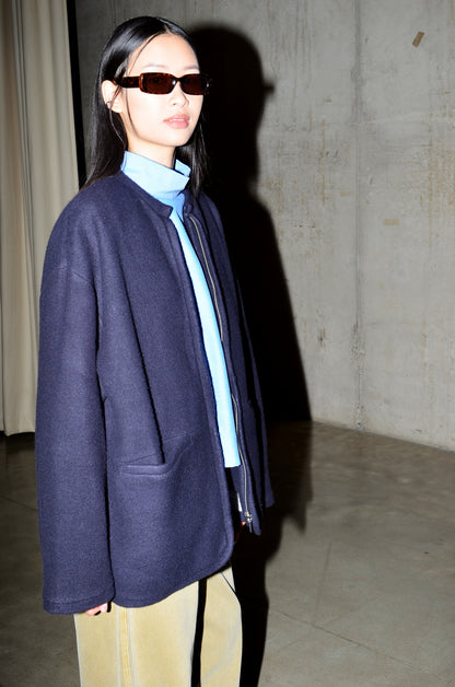 Sleek & clean cut jacket with a softness to keep you warm this winter, meet our JAIPUR jacket. The jacket has an relaxed, oversized fit, front pockets & closes with a zipper. It's made of a fluffy Japanese fabric, available in chocolate, ecru & navy.