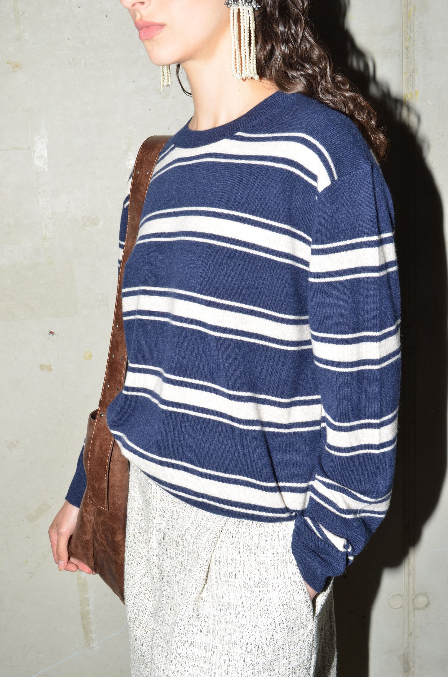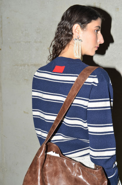 Becoming staple pieces in our knitwear family are the 100% cashmere knits. We have 4 basic shapes, all featuring a relaxed fit & a red rectangular detail in the back. The red rectangular represents stability, quality & visibility. KEANU is the one with the round neck. Available in 8 colours: navy, bright red, pale banana, dark cherry, oatmeal, caramel, light grey and arctic blue.